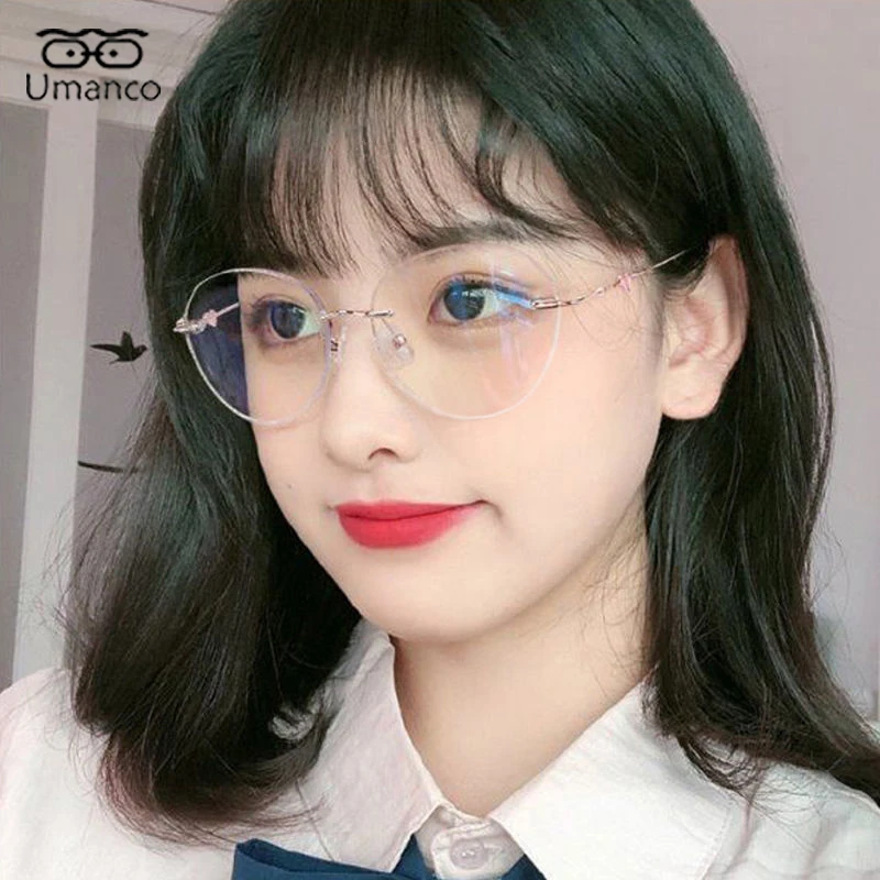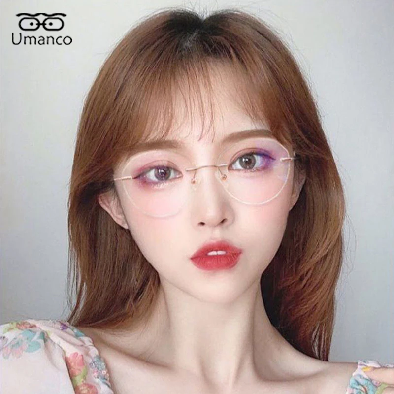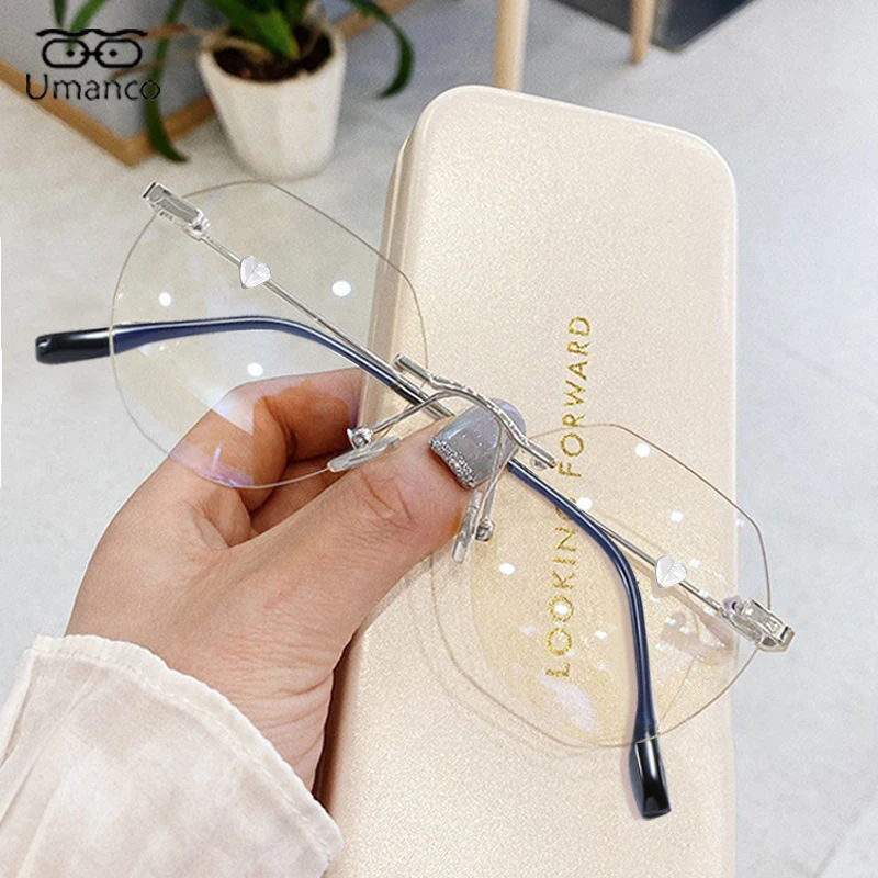 Женские очки без оправы с полигоном и сердечком для близорукости, металлические заушники, цвета розового золота, компьютерные очки, голубой светильник, очки по рецепту