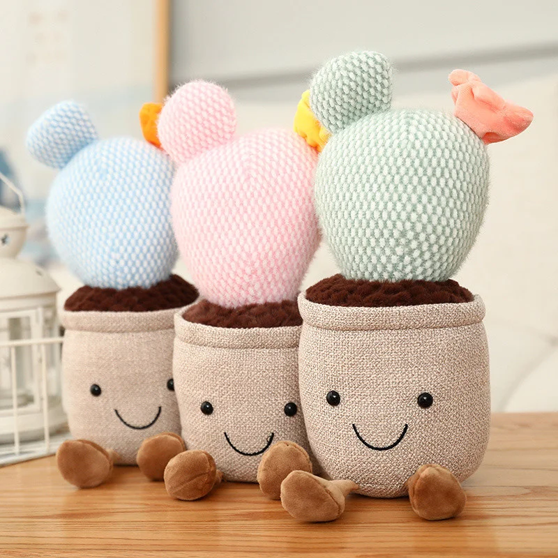 New Lifelike 25cm Plush Cactu Toy Stuffed Soft Plant Cactus Soft Doll Bookshelf Decor Doll Creative Potted Flower Toy for Girls