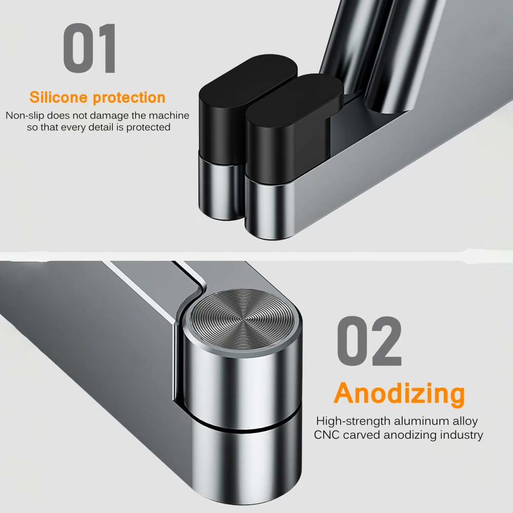 Несколько уровней регулировки угла, экран может быть отрегулирован под удобный угол произвольно, вдали от усталости работы, и защищает шейный отдел позвоночника при просмотре.