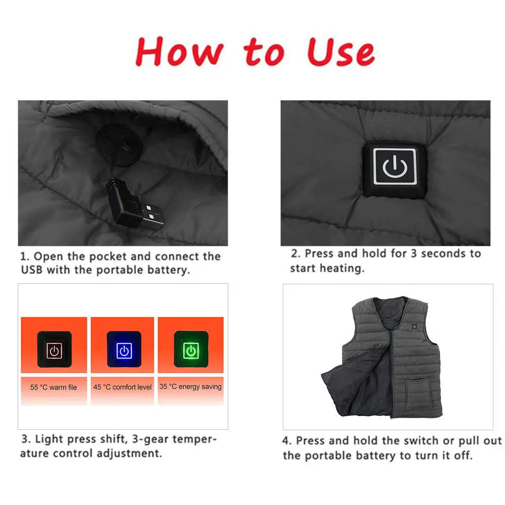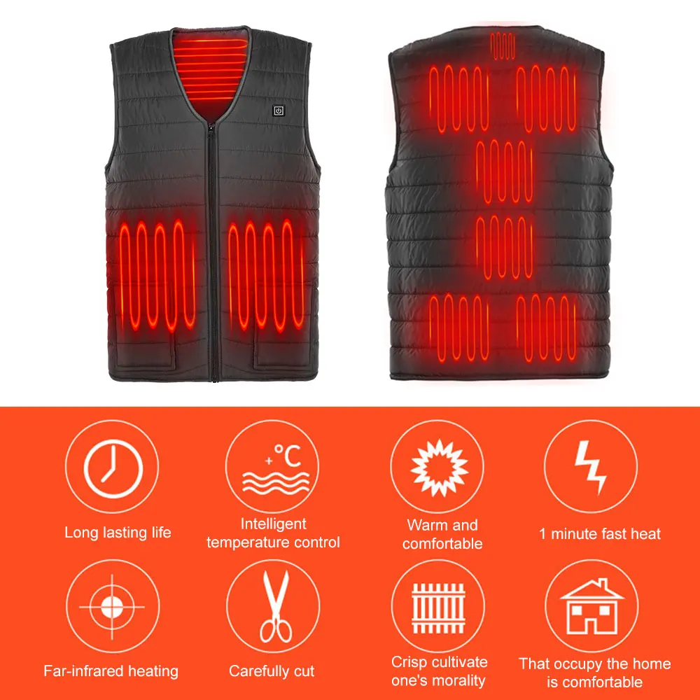 5. Широкое применение: Этот жилет с подогревом идеально подходит для катания на лыжах, зимней рыбалки, катания на горных велосипедах, велоспорта, кемпинга, снежного треккинга, охоты, активного отдыха на открытом воздухе, зимних улиц, повседневного офиса и многого другого.