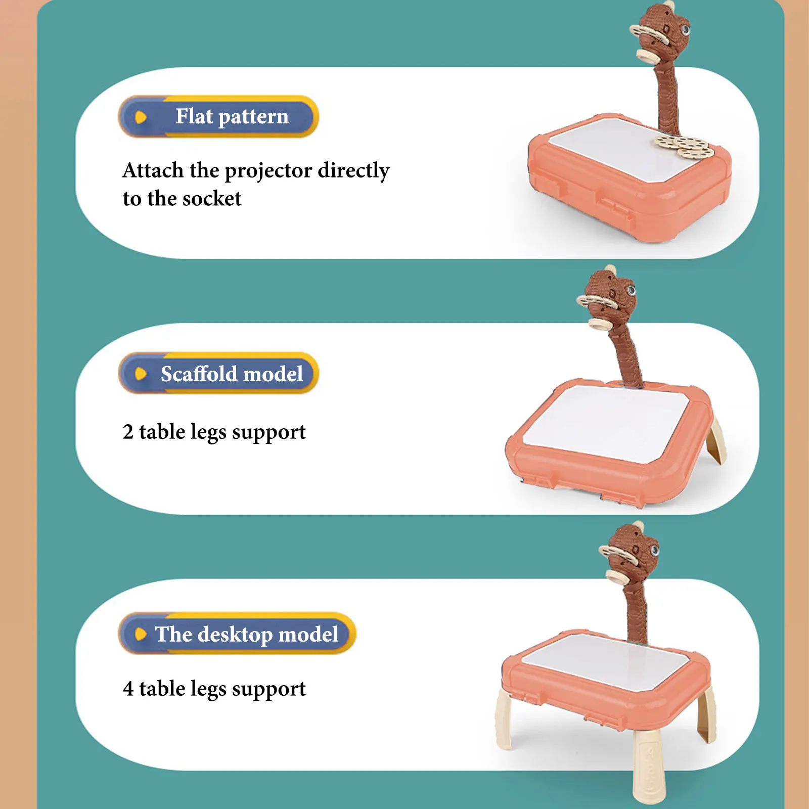 Дети могут рисовать на основе рисунка, проецируемого проектором на столе или в книге для рисования