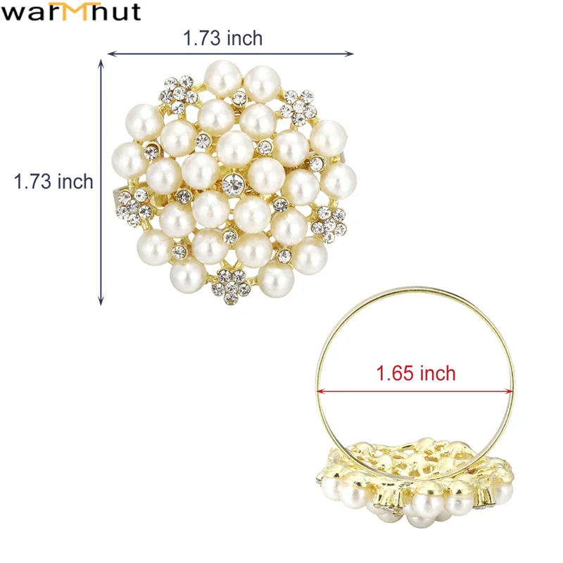 【Dimension】: Pearl and Rhinestone: 1.7"L x1.7"W; Metal ring: 0.16" width, Inner diameter: 1.57", Outer diameter: 1.65"