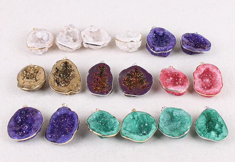 Характеристики подвески: 3 ~ 4 см, 30-50 грамм/шт. Качество продукции Натуральный Агат Жеода кристалл бутон Процесс продукта Натуральный Агат, окрашенный и гальванический, модный и красивый