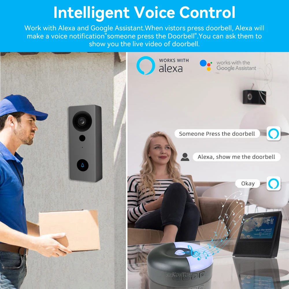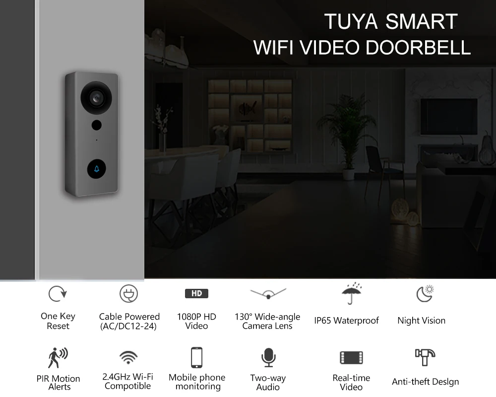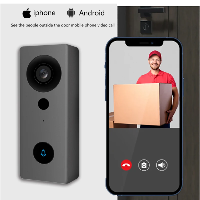 Угол обзора дверного звонка охватывает 130 градусов, ночное видение до 5 метров, когда кто-то бродит по двери, он поддерживает предупреждение о ПИР обнаружении движения, чтобы уведомить на мобильный телефон.