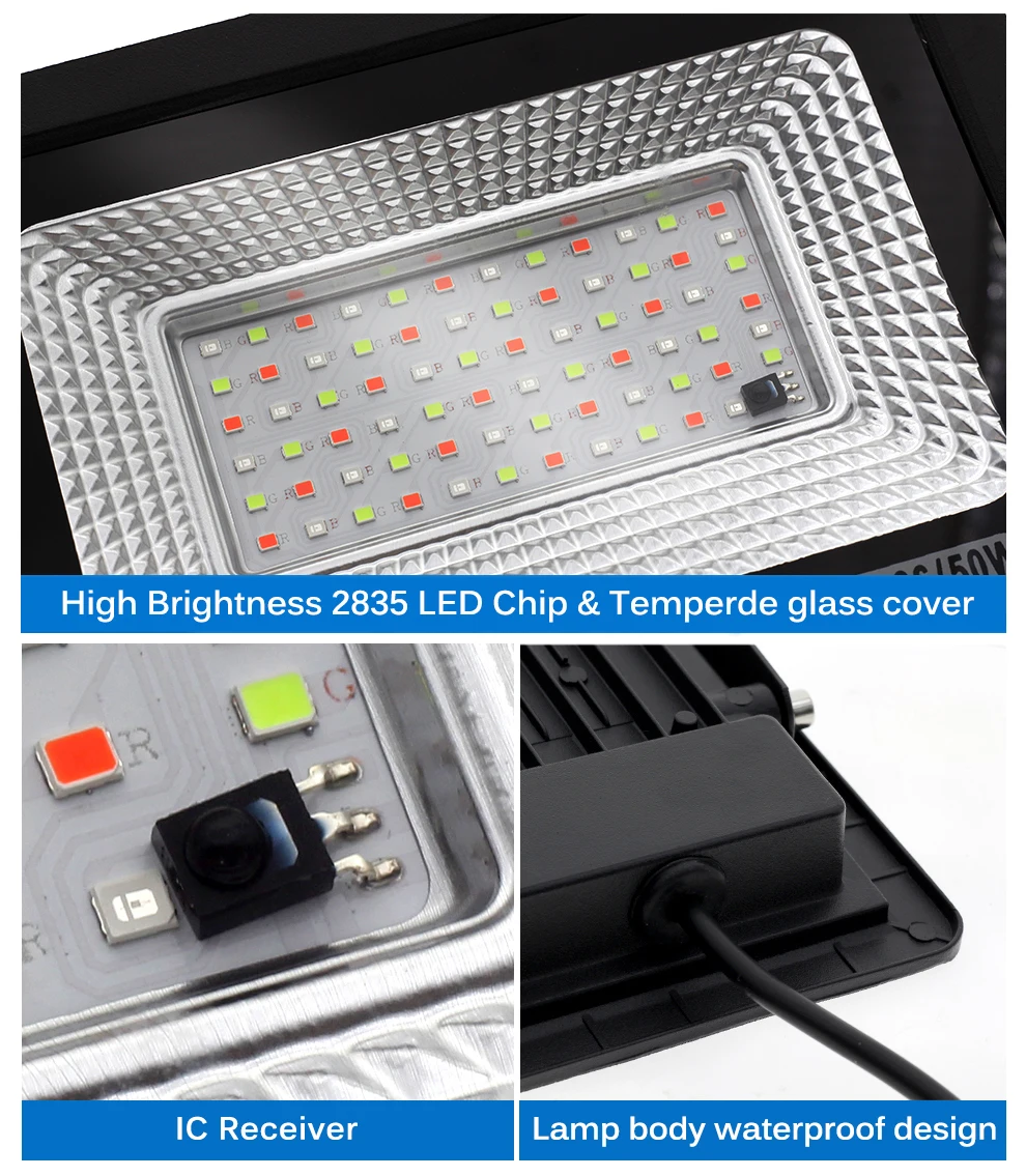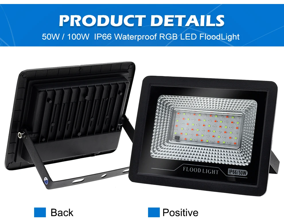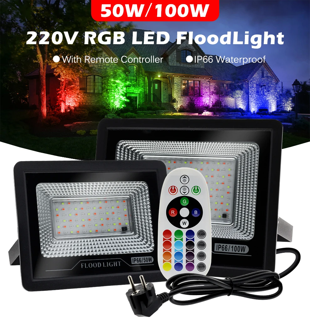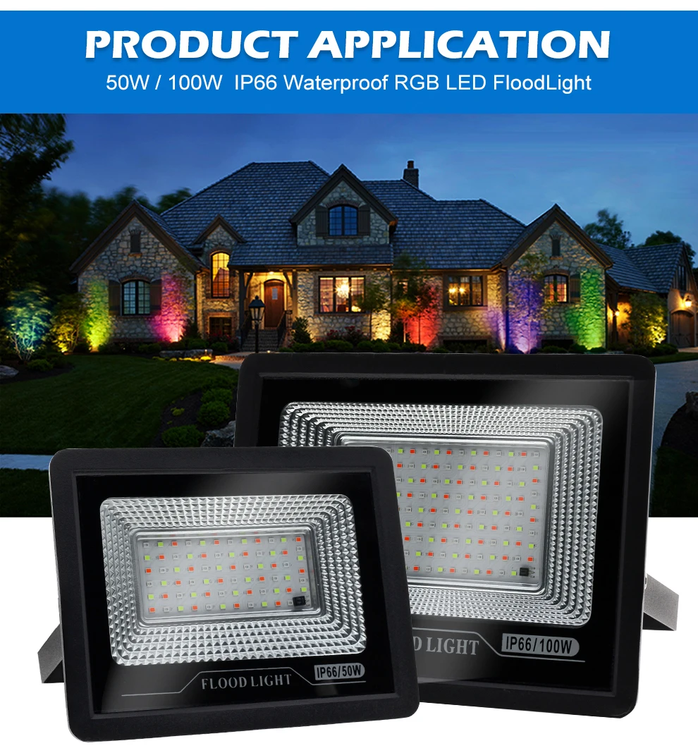 LED Flood Light 50W 100W IP66 Waterproof RGB Spotlight Outdoor Color Changing RGB Floodlight for Party Stage Landscape Lighting
