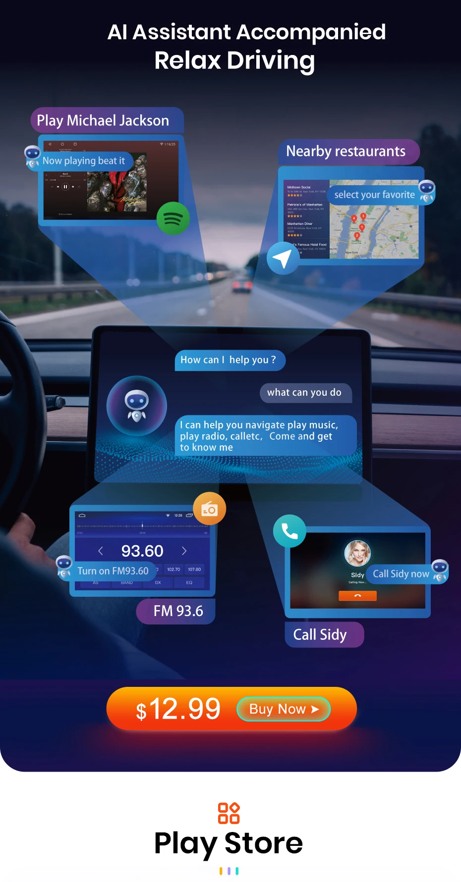 Вы можете управлять автомобильным радио, говоря несколько слов, это поймет ваш смысл и осуществит его. Эта функция является необязательной и управляется предварительно установленным приложением, вам нужно купить функцию, чтобы использовать ее. Нажмите на картинку ниже, чтобы купить.