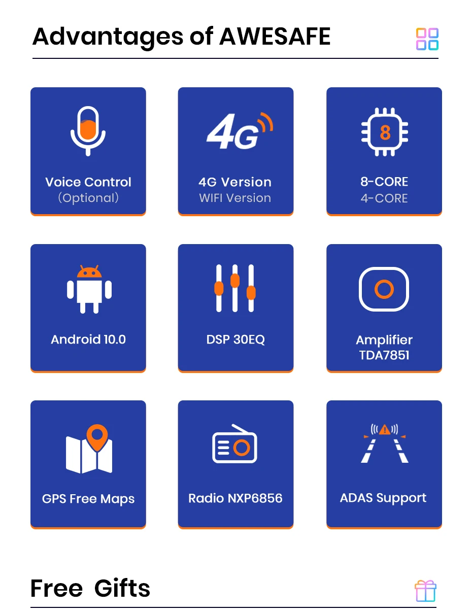 В AWESAFE наша миссия упорно работает, чтобы предоставить вам надежный и замечательный Автомобильный мультимедийный плеер/автомобильное радио, инновационное оборудование и программное обеспечение, а также бесплатные обновления для прошивки, программного обеспечения, GPS навигационные карты.