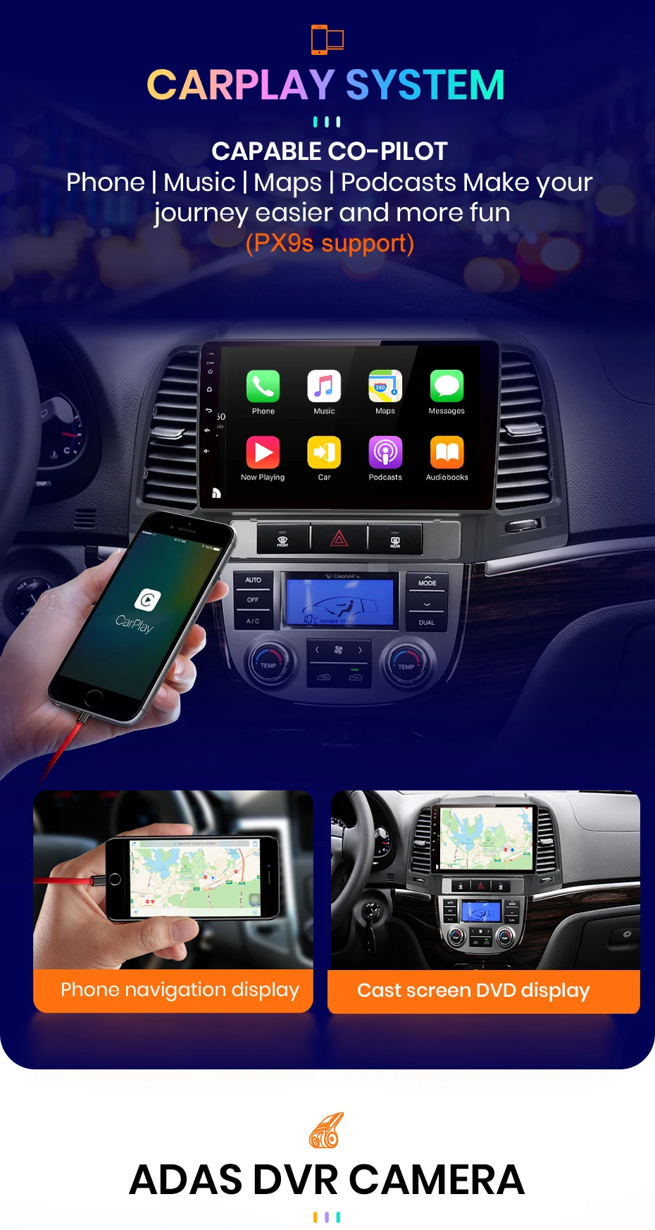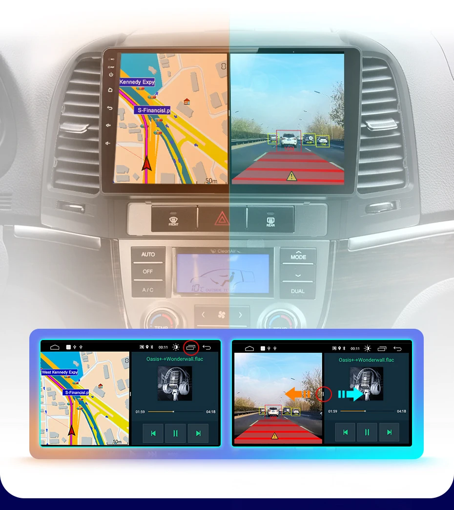Когда автомобильное радио подключено к ADAS video recorder, это сделает передовую систему помощи при вождении, И предупредит вас, если ваш автомобиль слишком близко к переднему автомобилю или если ваш автомобиль отклоняется от полосы движения, чтобы помочь вашему вождению безопаснее и проще.