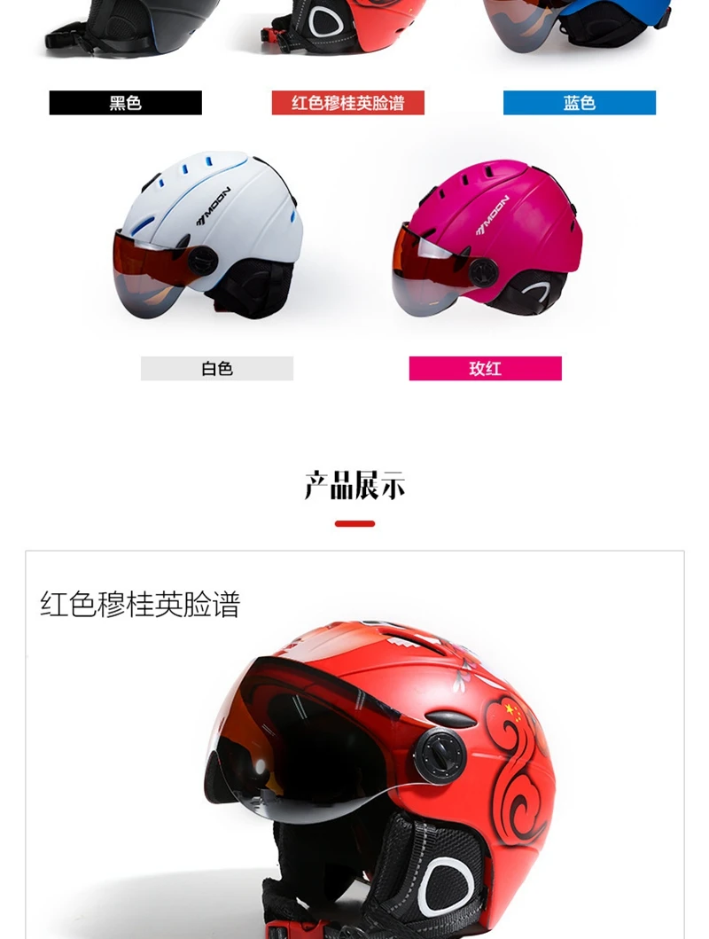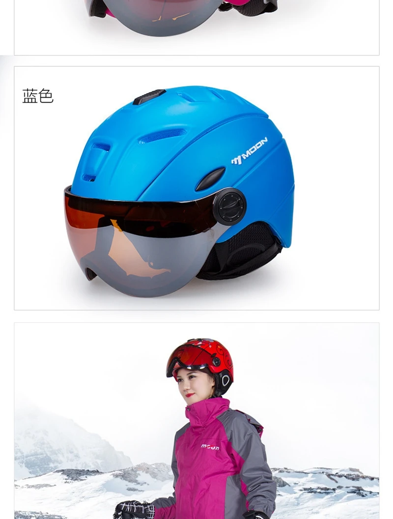 MOON Профессиональный полупокрытый лыжный шлем цельно формованные спортивные мужские и женские лыжные мото шлемы для сноуборда с защитными очками