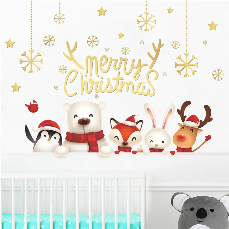 Новый год 2022 Декор Рождество медведь и животные плакат настенное искусство роспись детская классная декорация обои мебель стикер