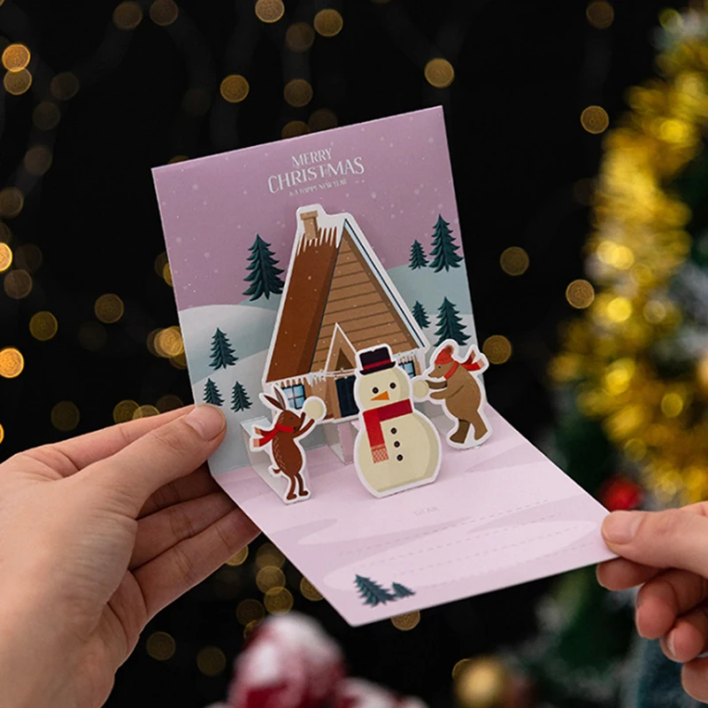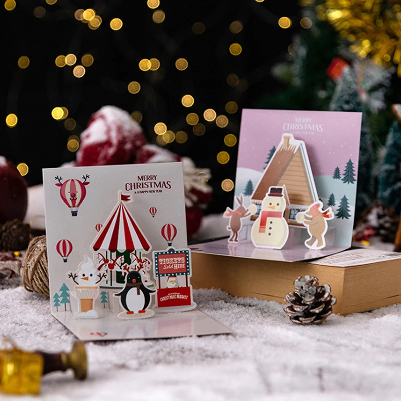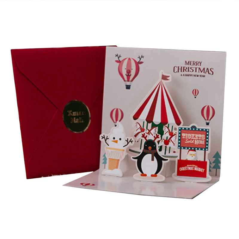 Рождественская открытка с конвертом Санта Снеговик Рождественская елка 3D всплывающие вечерние приглашения подарки складной Тип Открытка