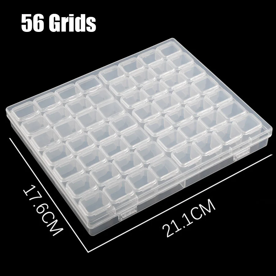 64/56/28 Cells Plastic Storage Box Stickers Sets For Diamond Painting Accessories Tools Bead Tray Plate Case Container Organizer