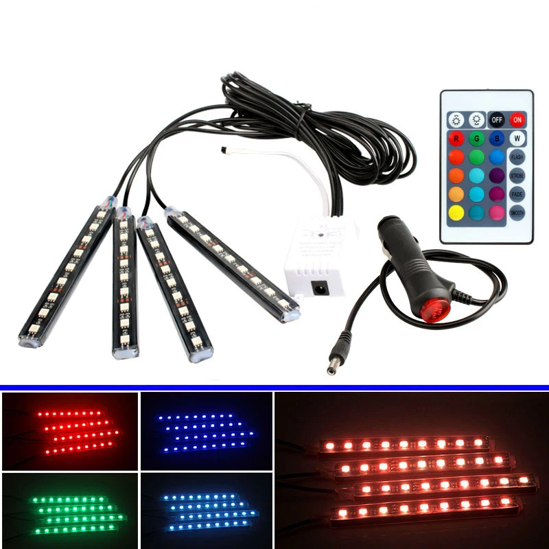 Беспроводное управление музыкой, 7 цветов, набор светодиодных ламп для салона автомобиля RGB.