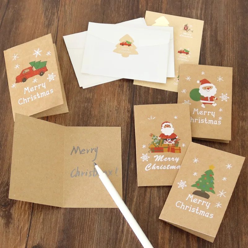 6 шт Ретро Сделай Сам Санта Клаус Рождественская елка крафт-бумага пригласительная открытка с конвертом свадебные приглашения конверты