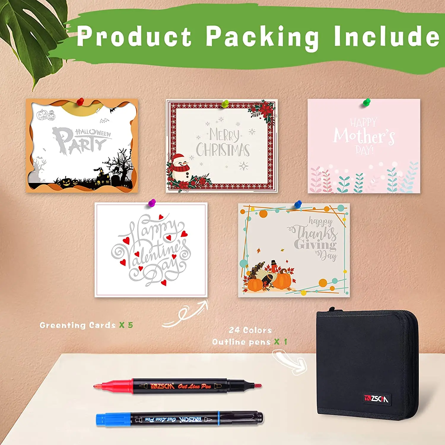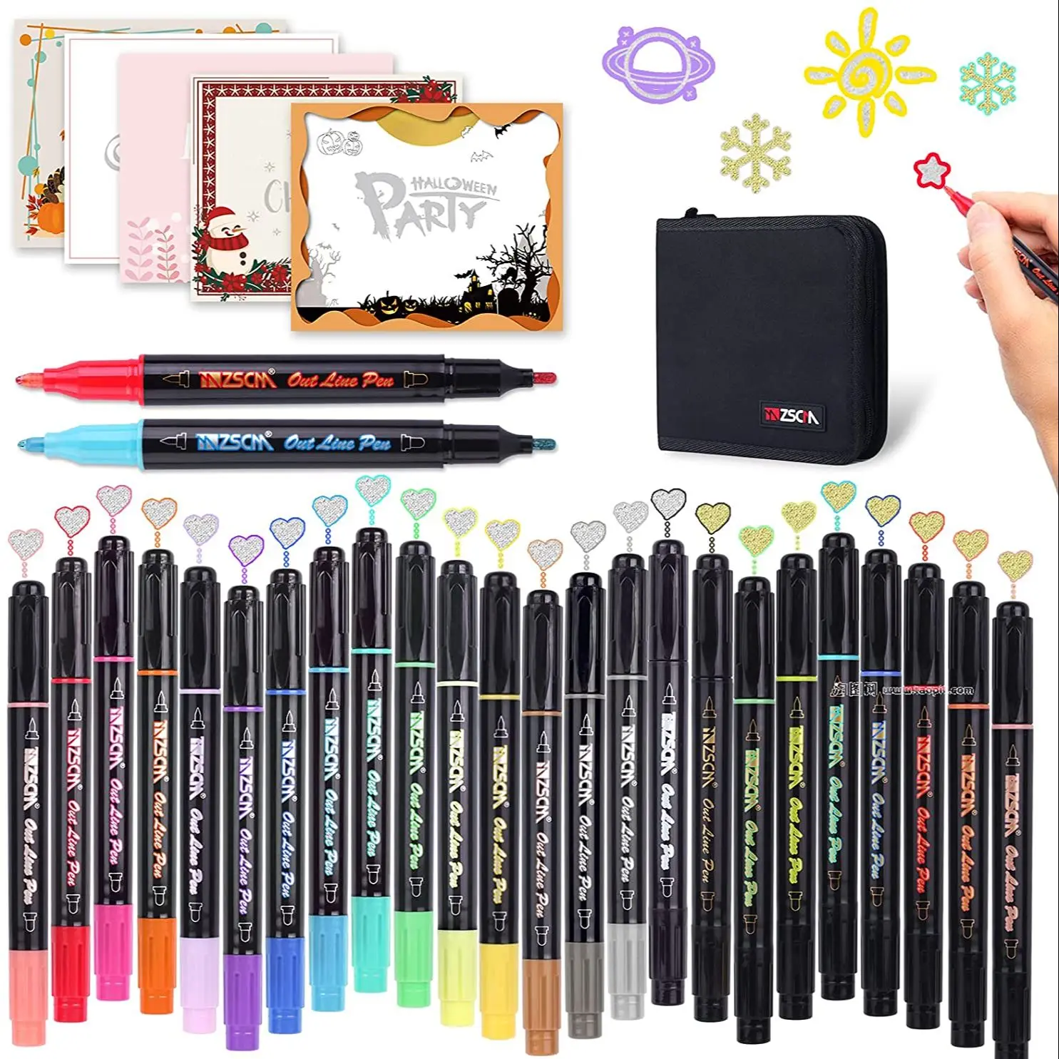 🎨Уникальный 24 двойные гофрированные контур маркеры-нашу полную двойной наконечник контур ручки набор иметь идеальную и уникальный дизайн, поставляется с 0,5 Экстра тонкий наконечник и 2-3 мм Средний наконечник, дополнительные Тонкие наконечники дадут последовательные линии для детального изобразительного искусства, отлично подходят для набросков и деталей, хорошо подходят для сложных раскрасок, письма, Рисование. 2-3 мм Средний наконечник для затенения, окраски, быстро цвет в больших областях художественного проекта.