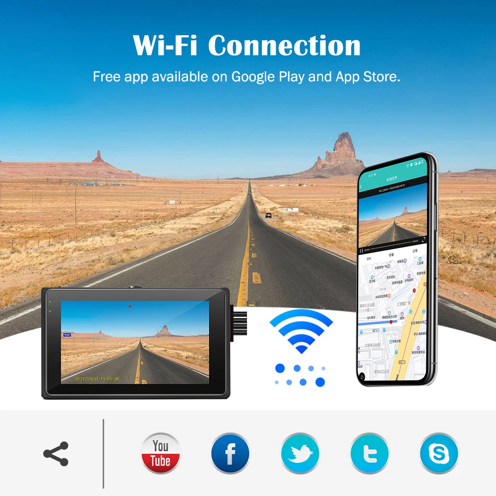Подключитесь к встроенному Wi-Fi и откройте приложение «WiFi Camera» для плавного просмотра, воспроизведения, настройки, загрузки или обмена невероятным HD видео по беспроводной сети на вашем мобильном устройстве. Приложение поддерживает системы iOS и Android.