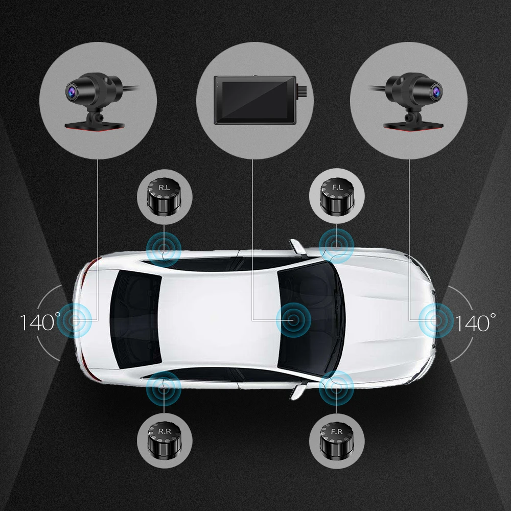 Получить 4 TPMS датчики, установленные в колеса, система контроля давления в шинах уведомит Вас на 3,0 дюймовым экраном в тех случаях, когда вашего автомобиля давление в шинах низкое/высокий или температура слишком высока. Помогая вам поддерживать правильное давление в шинах и температуру, TPMS может повысить вашу безопасность на дороге, улучшая обработку вашего автомобиля, уменьшая износ шин, уменьшая расстояние торможения и увеличивая экономию топлива.