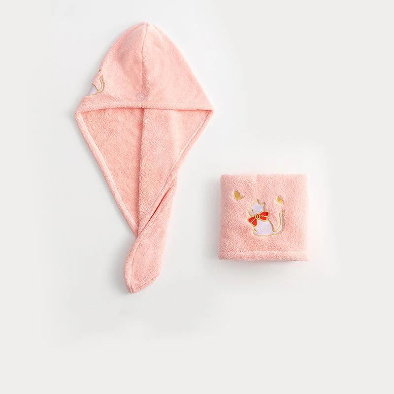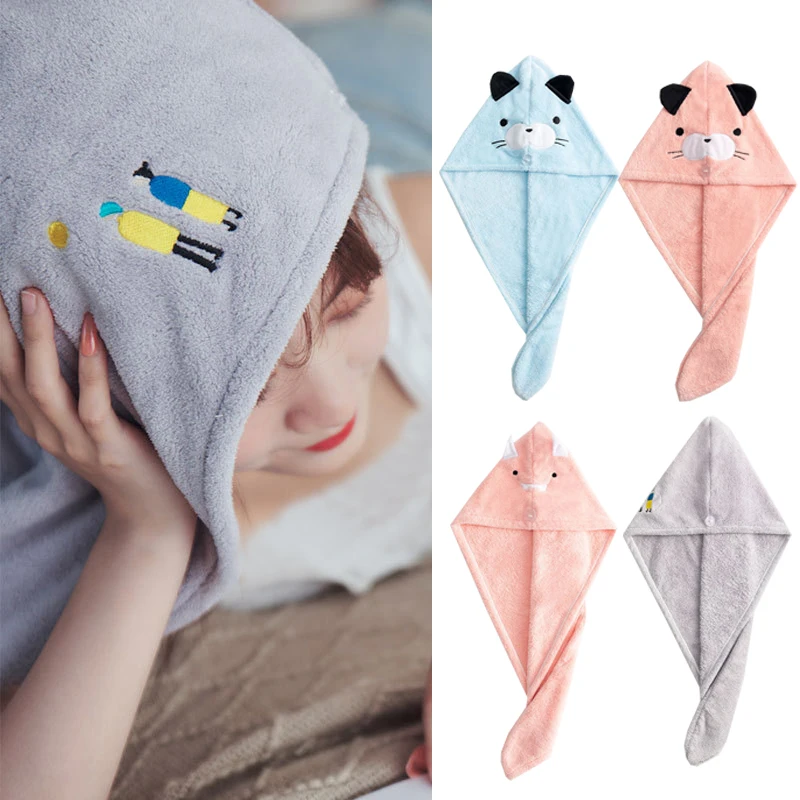 Полотенце для сухих волос, впитывающее сухое полотенце для волос, Вышитое сухое полотенце для волос, мультяшное Коралловое флисовое сухое полотенце для волос, дышащая шапочка для душа