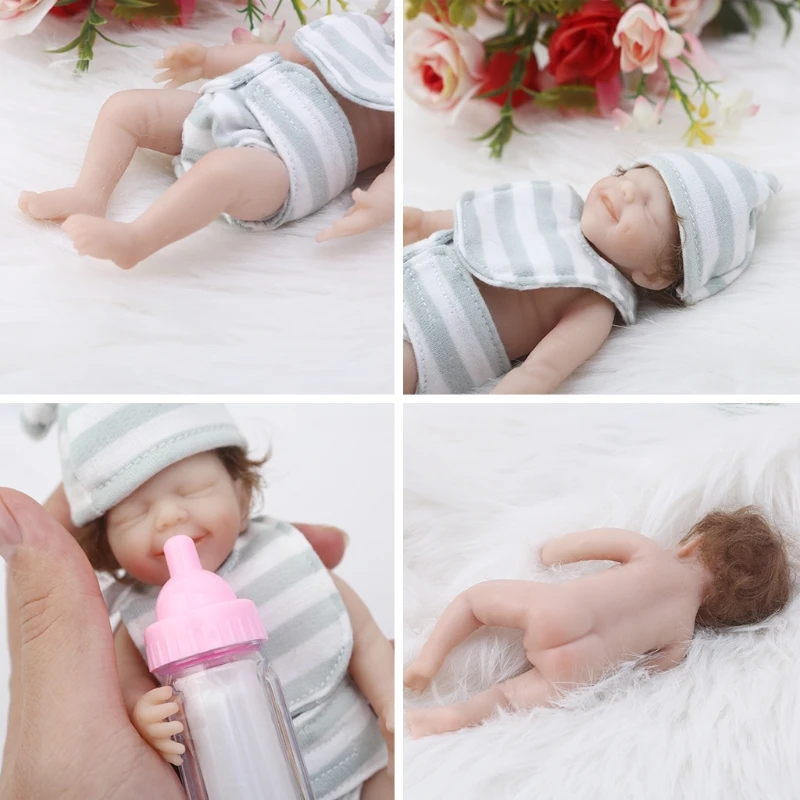Моделирование возрожденной куклы: кукла измеряет прибл. 15 см/6 дюймов, с мягким телом и настоящим прикосновением, закрытыми глазами с красивыми вьющимися волосами, яркой реалистичной игрушкой, хорошо стимулирует ребенка на ощупь и взаимодействует с настоящим ребенком.