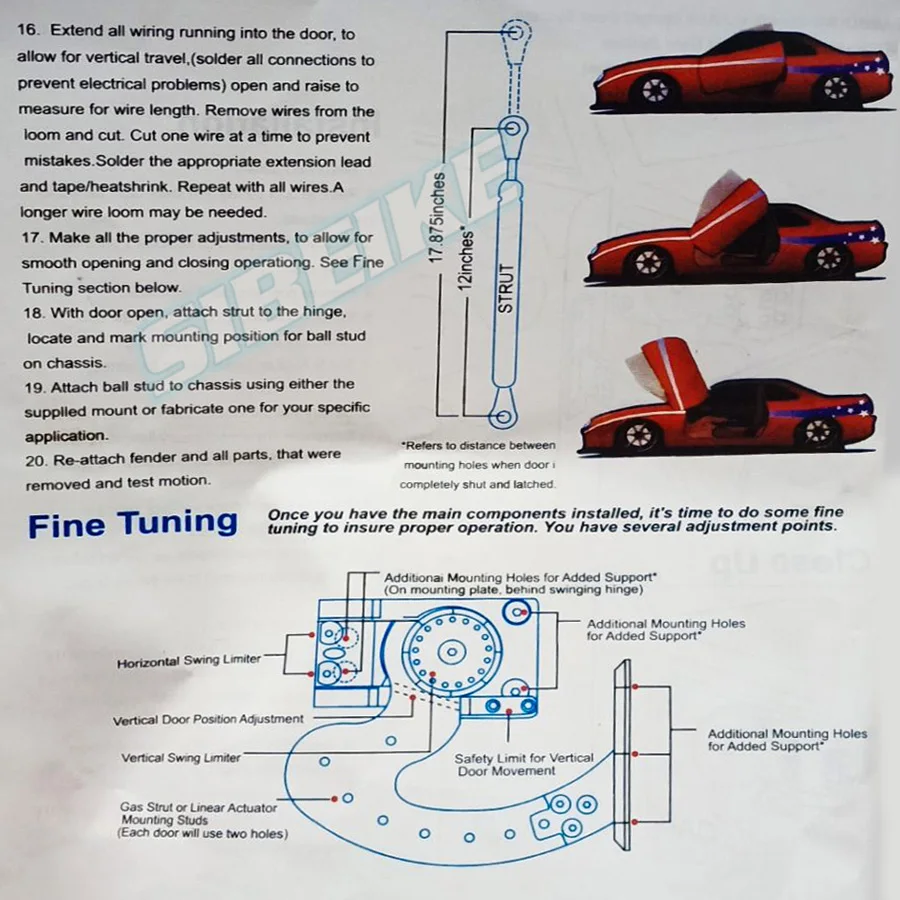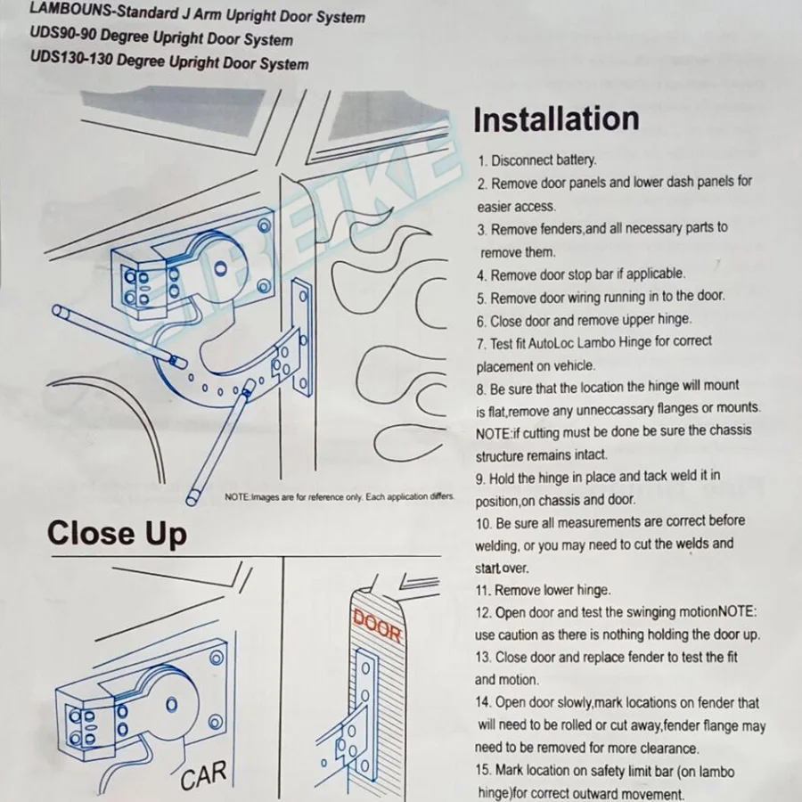 Комплект вертикальных дверных петель, установка на болт для универсального использования. Вертикальные двери переворачивают традиционный наружный путь открытия с петлями вверх-открытия. Так как положения шарниров такие же, как у обычных автомобилей, почти все транспортные средства квалифицированы Для переустановки в вертикальные двери, включая открытые автомобили.