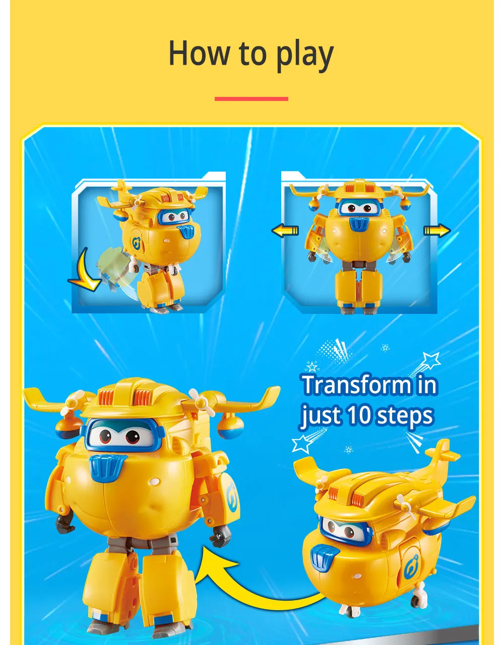 Соберите всю линейку членов команды Super Wings (продается отдельно)!