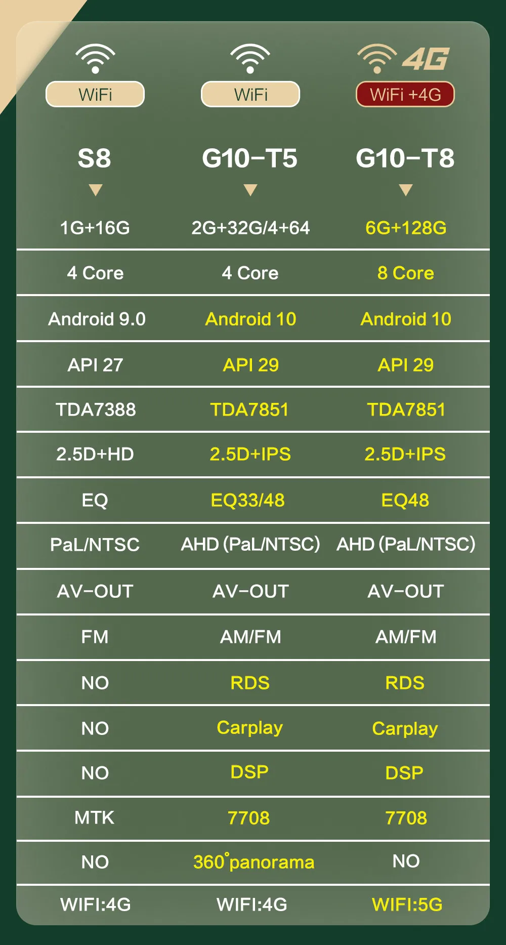 10.S8 поддерживает FM, T5/T8 поддерживает RDS/AM/FM