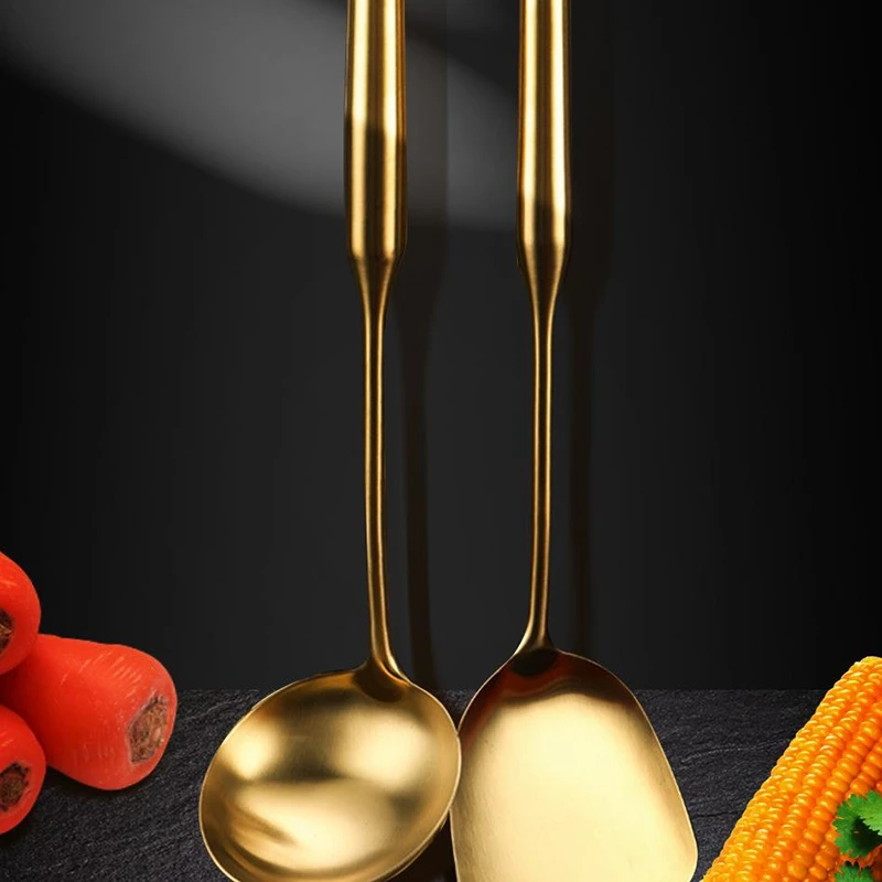 Материал высокого качества: Эта кухонная ложка изготовлена из высококачественного материала, устойчива к ржавчине, не содержит свинца. Этот набор посуды не является магнитным вместо других брендов catchs magnetic. Этот материал является пищевой, здоровой для ежедневного использования. Королевская Золотая посуда идеально подходит для свадьбы, вечеринок, особых мероприятий, также идеально подходит для ежедневного использования.
