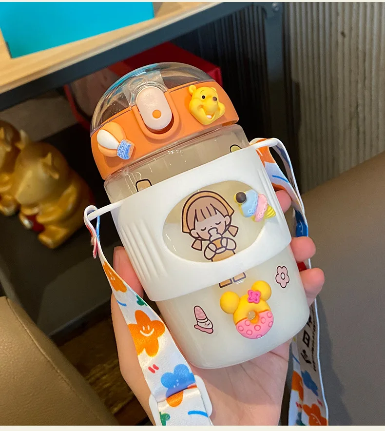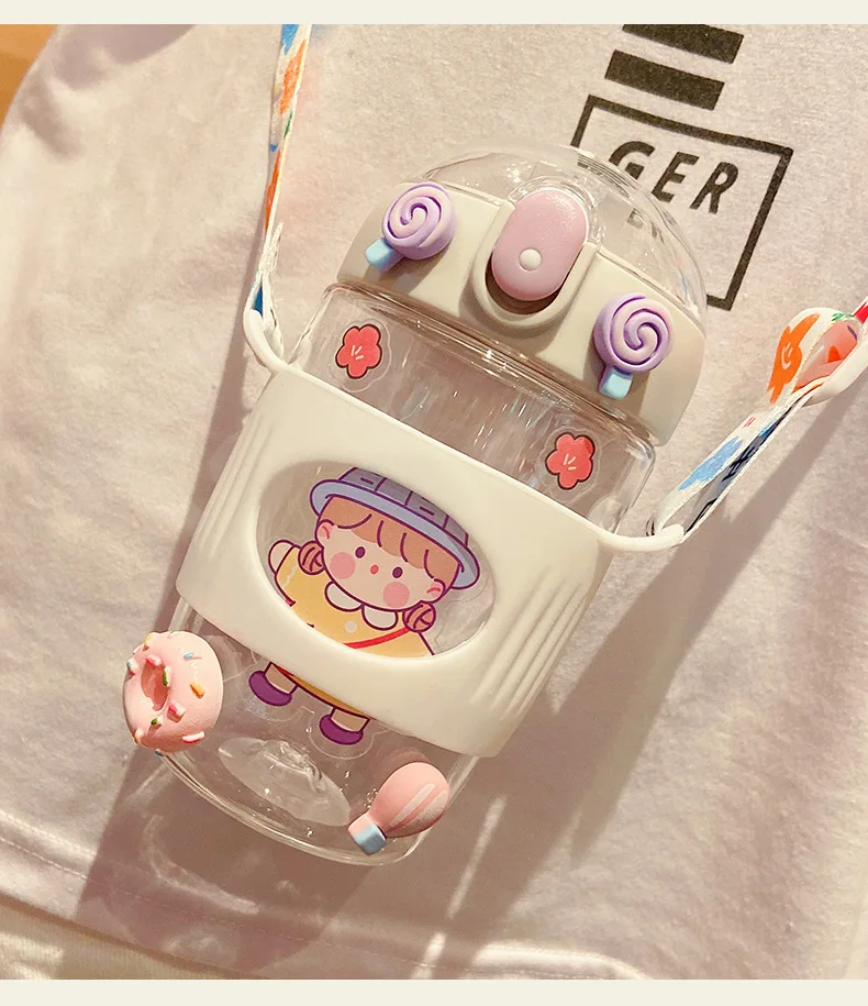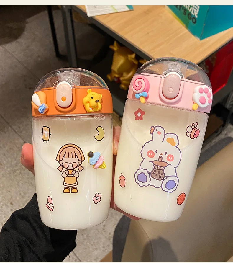 380 мл Kawaii соломенная чашка милый пластиковый стаканчик с соломинкой Питьевая чашка с бутылка для воды с крышкой портативный с ремнем многоразовые дети