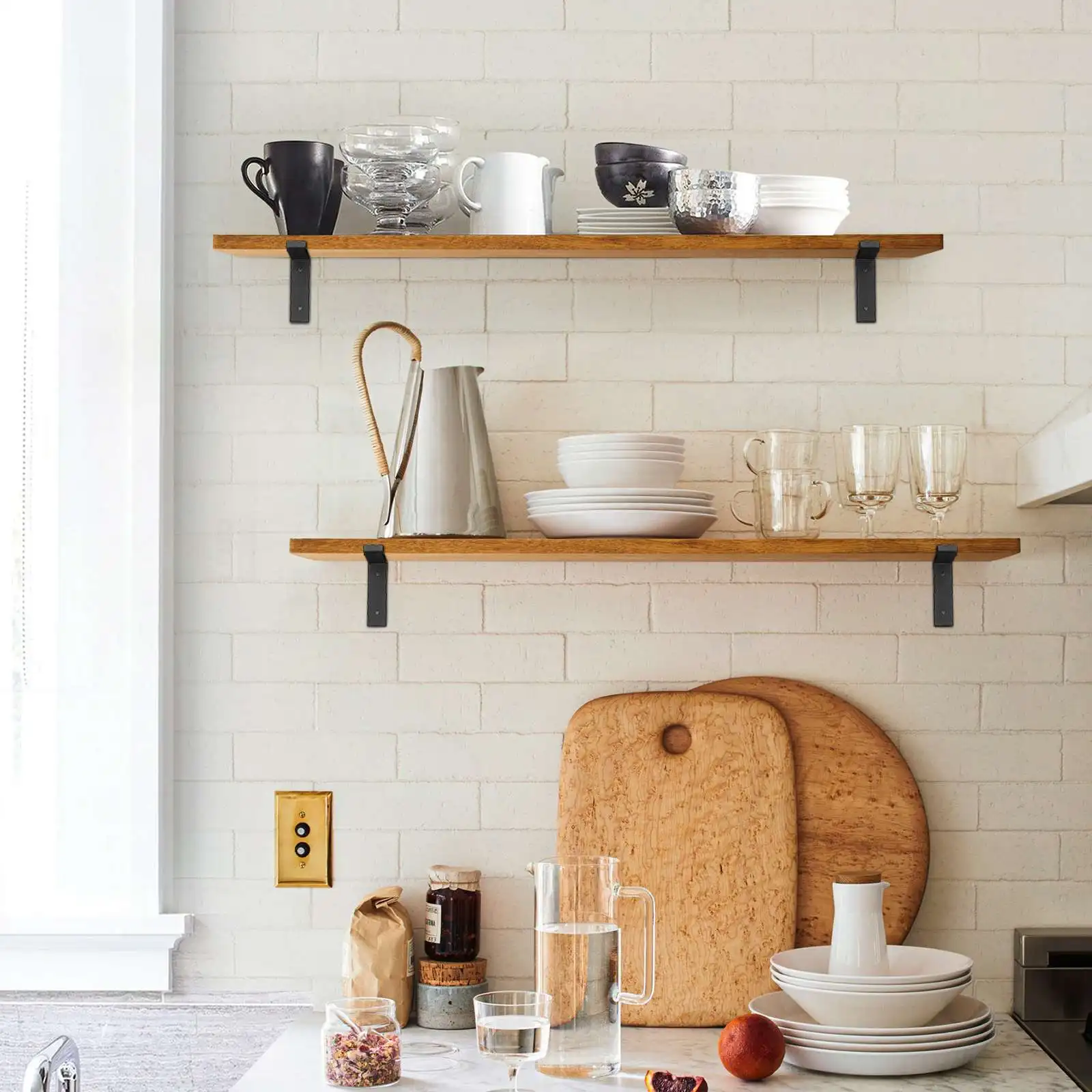 ?Один набор металлических кронштейнов для подвешивания выветриваемых полок на стене корабля, эта настенная полка подходит для кухни, ванной комнаты, офиса, спальни, гостиной, кафе и ресторана в качестве опорного кронштейна.