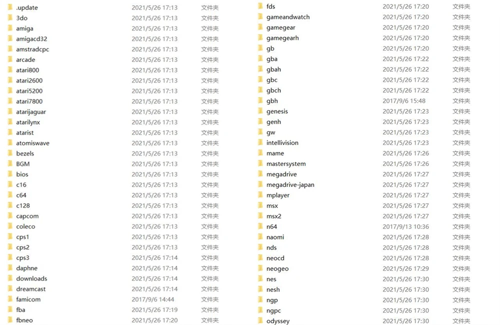 Включает fc/nes/gb/gbc/gba/snes/sfc/sgea/md/cps/mame/neogeo/pgc/sms/gg/gw/n64/ps1/psp/MSX/SegaCD/NDS/Dreamcast и так далее.