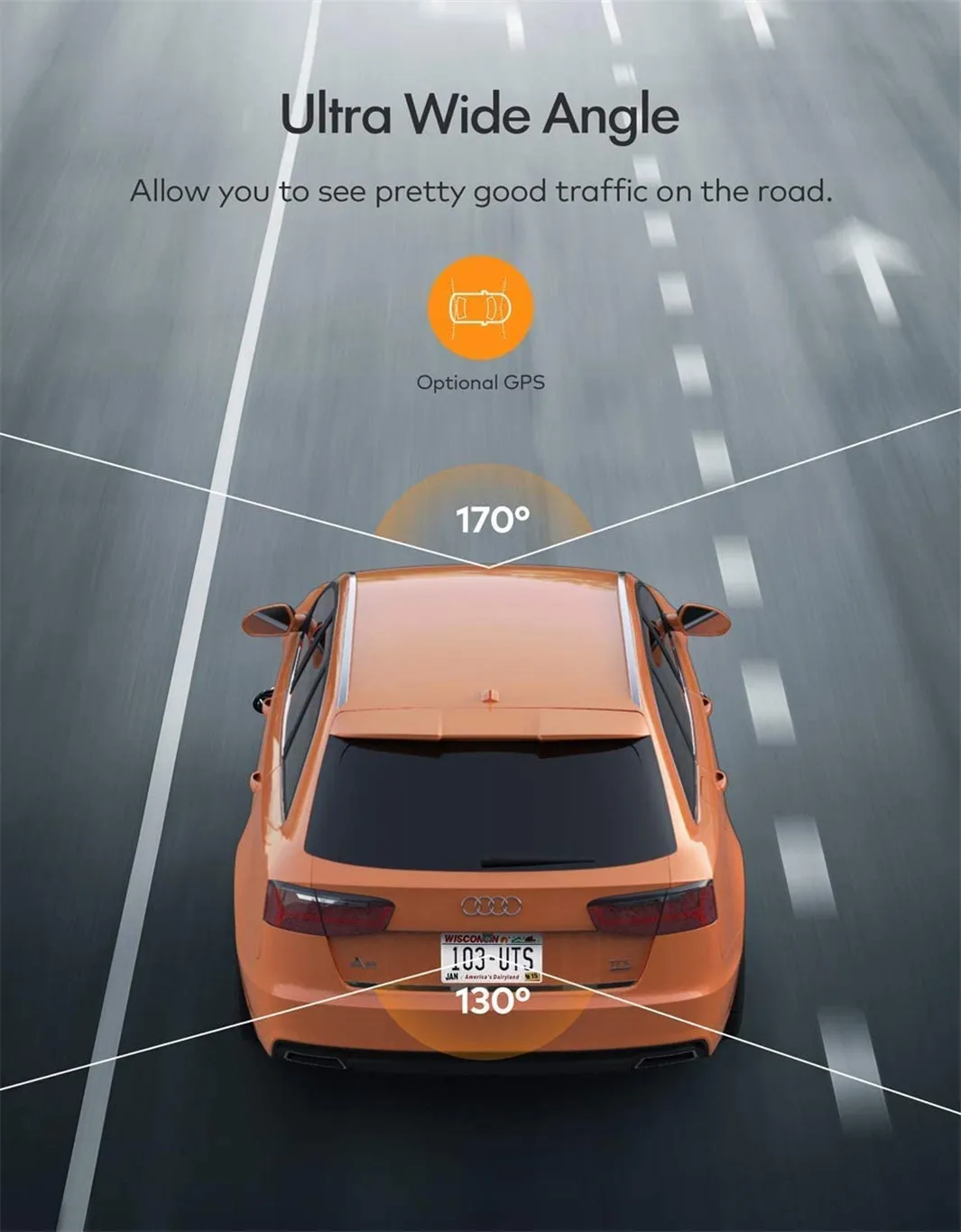 Функция: ночное видение, WDR, g-сенсор, режим парка, циклическая запись, обнаружение движения, блокировка аварийных ситуаций, встроенный аккумулятор, полный