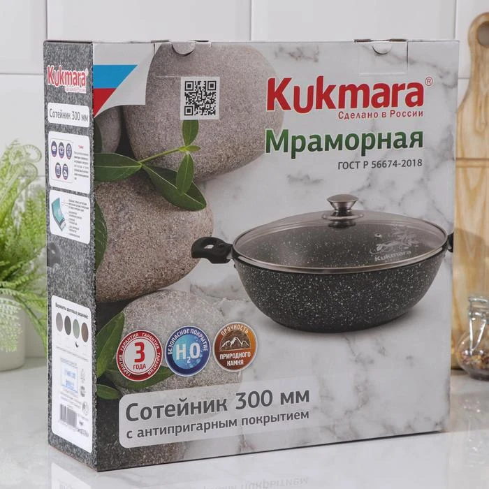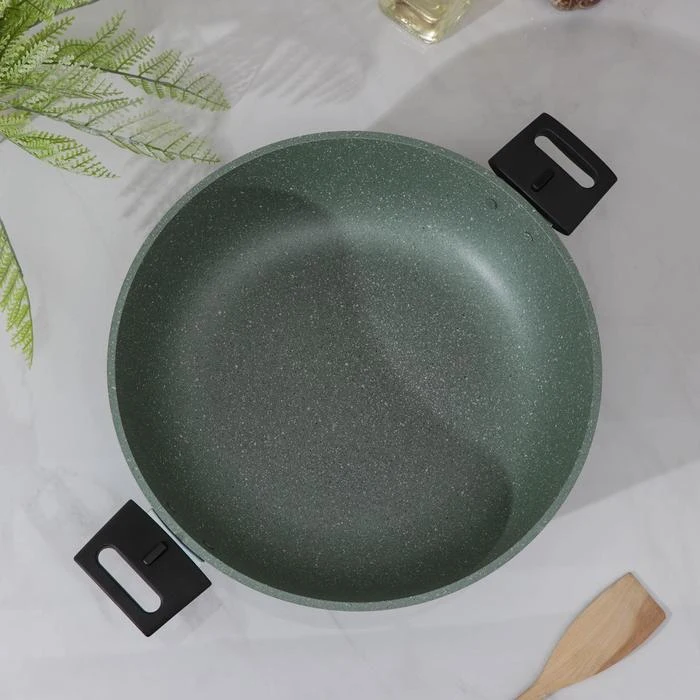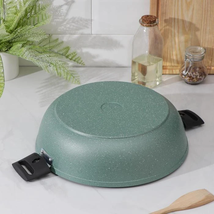Сотейник «Фисташковый мрамор», 4,5 л, d=30 см, съёмная ручка, стеклянная крышка, антипригарное покрытие