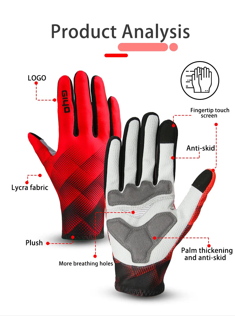 * Бренд: Giyo* Модель: S-09* Размер: S / M / L / XL / XXL* Вес: прибл. 60 г/пара* Материал: матовая лайкра* Цвет: черный/красный/синий/желтый* Подходящий сезон: весна/осень/зима ** Дизайн сенсорного экранаВитрина
