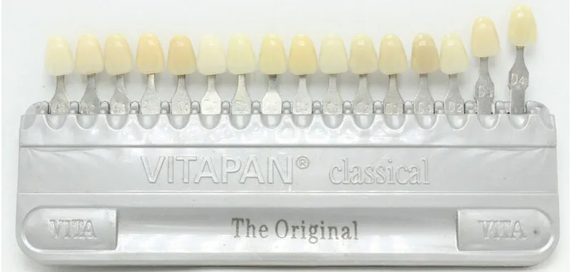 Это система сравнения цветов, разработанная в соответствии с теорией сортировки цветового пространства на рынке в настоящее время. Цвет зубов определяется тремя значениями яркости, насыщенности цвета и оттенка.