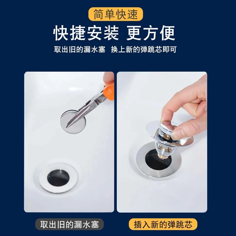5、Convenient installation: No tools are required, the installation can be completed by removing the old one and inserting the plug core. If you want to clean the sink plug, just pull it up and it can be done easily.