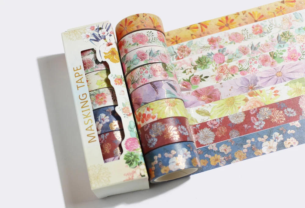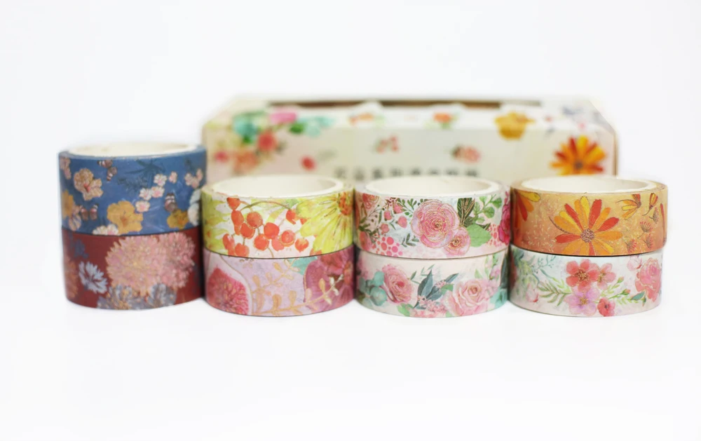 Набор декоративного скотча Васи 8 рулонов декоративные ленты цветок маскирующая лента Канцтовары Золотая фольга винтажные школьные принадлежности 5 м клейкая мочалка