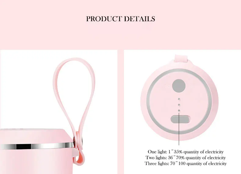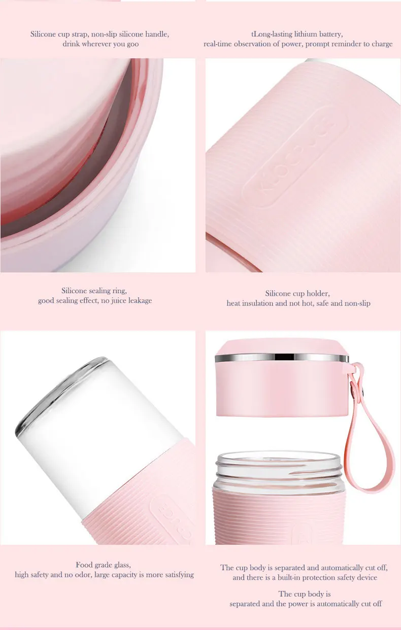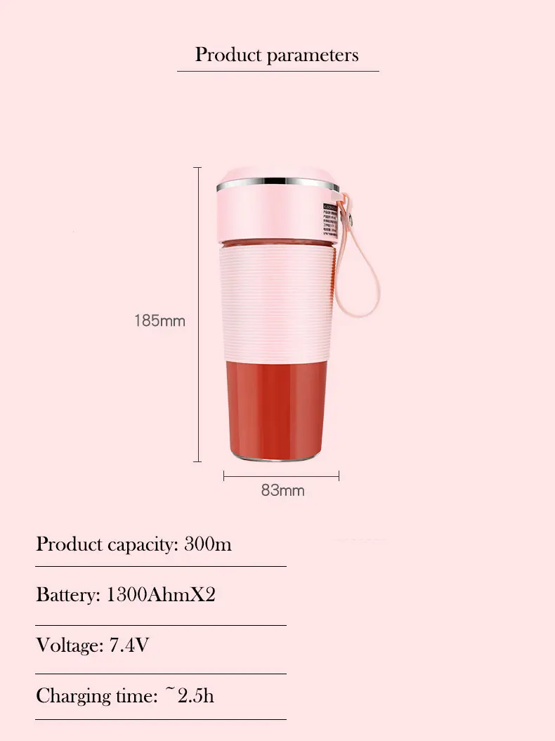 - Wireless and convenient, easy to put in the bag, suitable for home, office, outdoor, USB rechargeable juicer, blender.