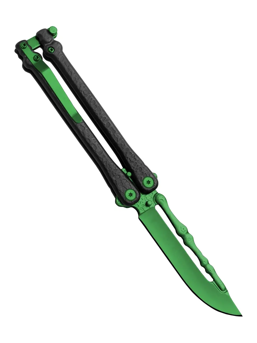 "Богомол" - нож с беспружинной фиксацией и инерционным извлечением клинка, а проще говоря это нож-бабочка. Данный форм-фактор достаточно популярен уже многие годы благодаря простому и надежному механизму складывания. Клинок и рукоять ножа стилизованы под конечности насекомого, отсюда и его название. Для удобства ношения на одной из половинок рукояти установлена жесткая клипса, благодаря которой нож можно зафиксировать на кармане, ремне или на сумке.
