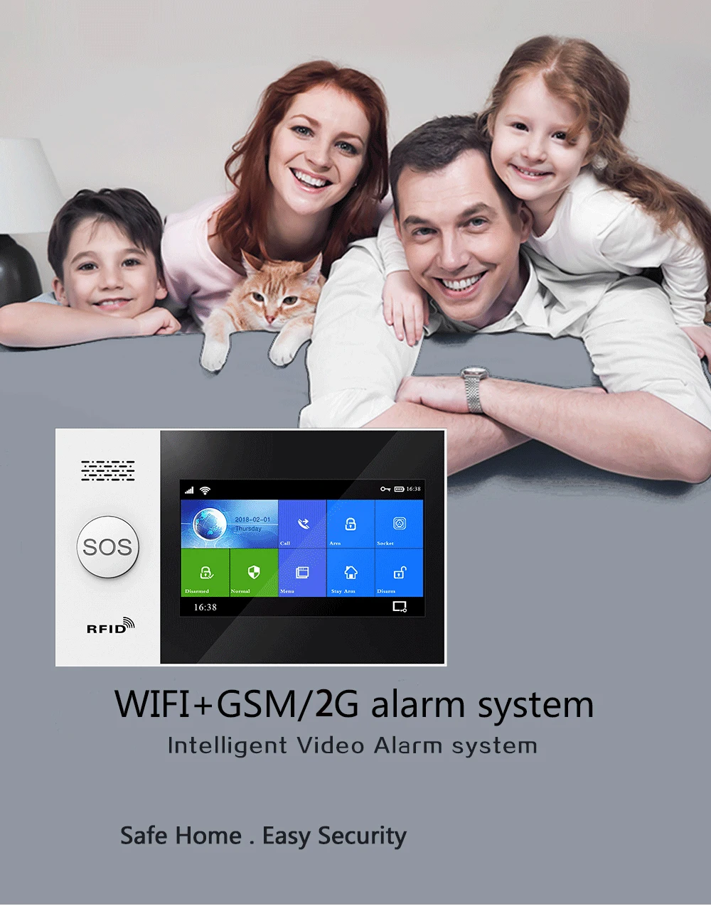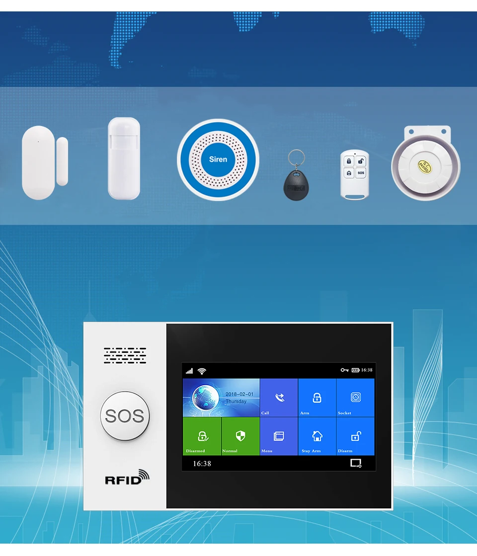 Wifi GSM сигнализация Tuya Умный домашний комплект безопасности для умной жизни Alex с датчиком двери детектор RFID все сенсорные 4,3 дюймов экран