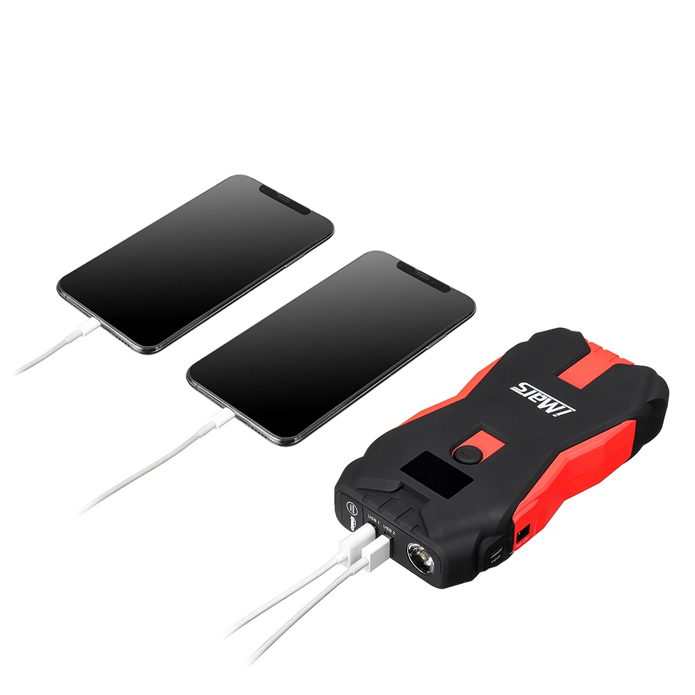 The high capacity 20000mAh car starter with 2 USB connection, can fully charge your smartphones, tablets, cameras, etc.