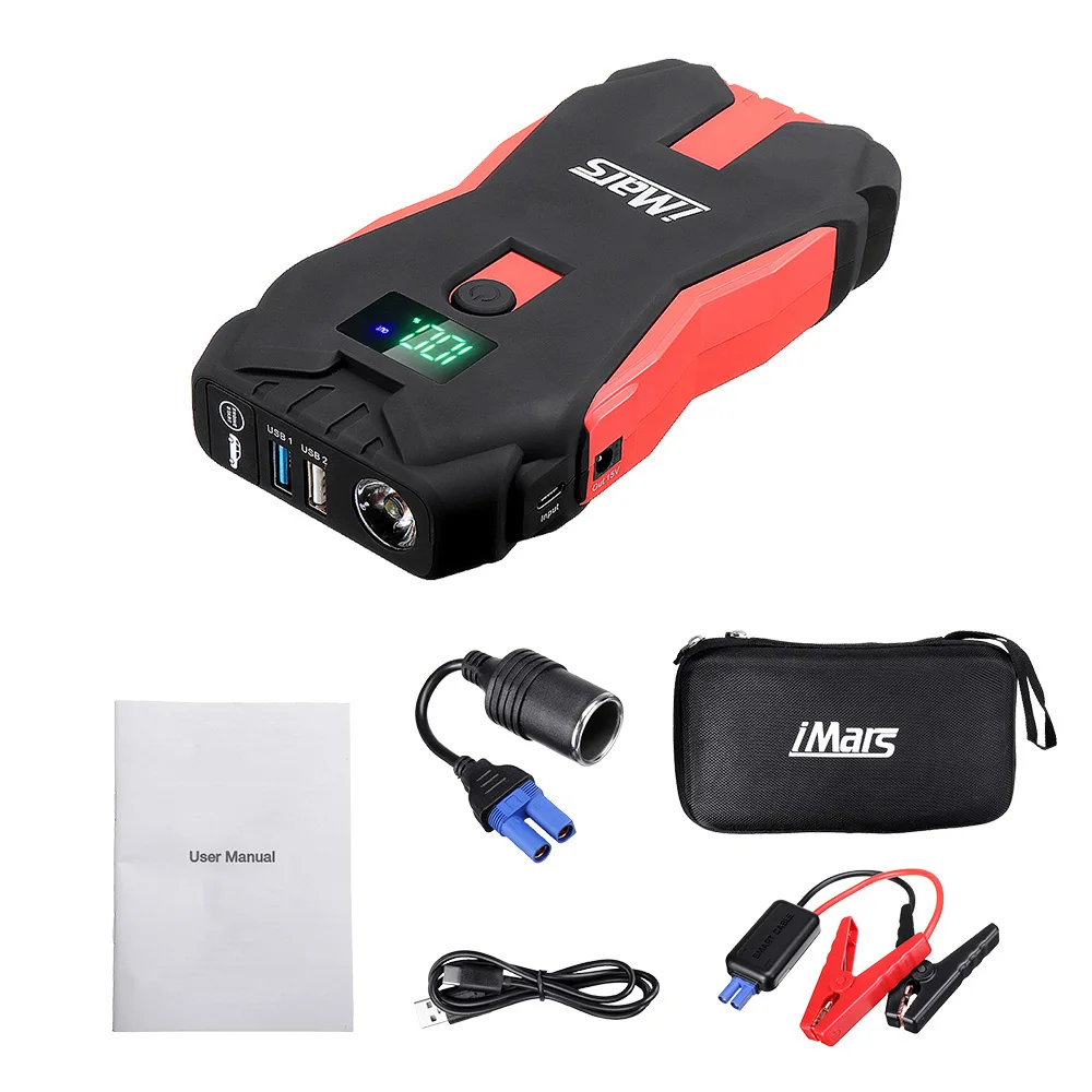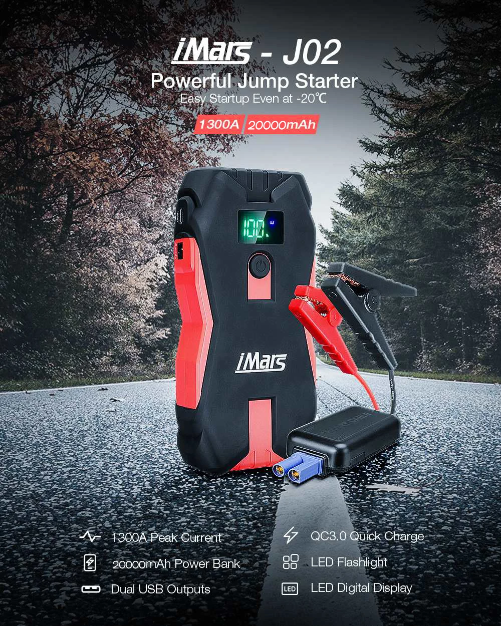 The iMars car starter is equipped with a maximum current of 1300A and a large capacity of 20000 mAh to start 12V vehicles (Up to 5.0L Gas or 3.0L Diesel) in seconds. The car starter battery is suitable for cars, trucks, snowmobiles, oil boats, yachts and more.