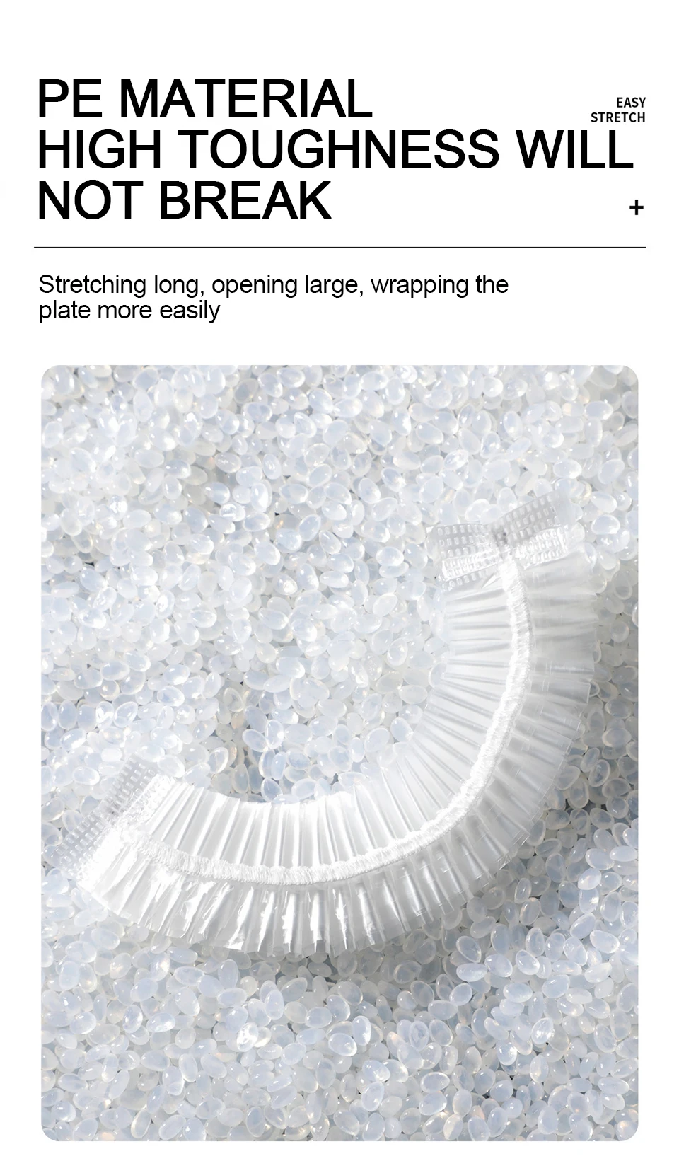 ▶[Правильно завернутый]Края каждого тщательно изготовленного прозрачного пищевого покрытия оснащены эластичной лентой с подходящей кривизной, которая может обернуть пластину без чрезмерного напряжения.