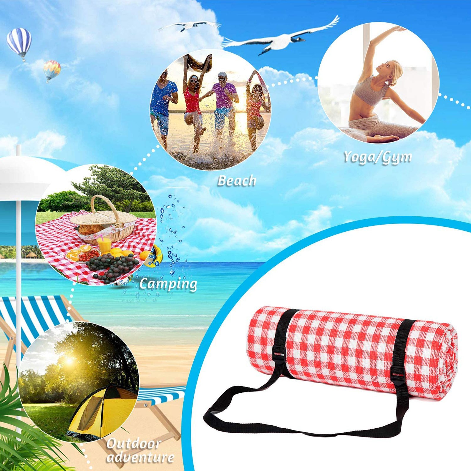 Большой размер: размер в разложенном виде этого коврика для пикника составляет 200x200 см, может