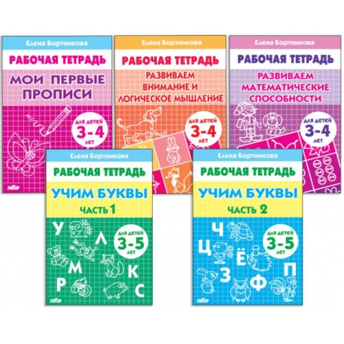 Комплект из 5 рабочих тетрадей для детей 3-5 лет Бортникова 7435739