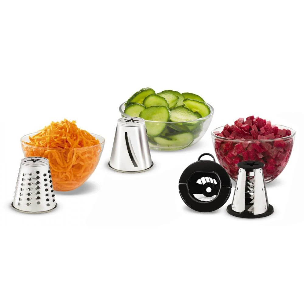 Насадки: Насадка для нарезки кубиками, насадка-овощерезка средняя терка, насадка-овощерезка тонкая нарезка, насадка кеббе, насадка для домашней колбасы