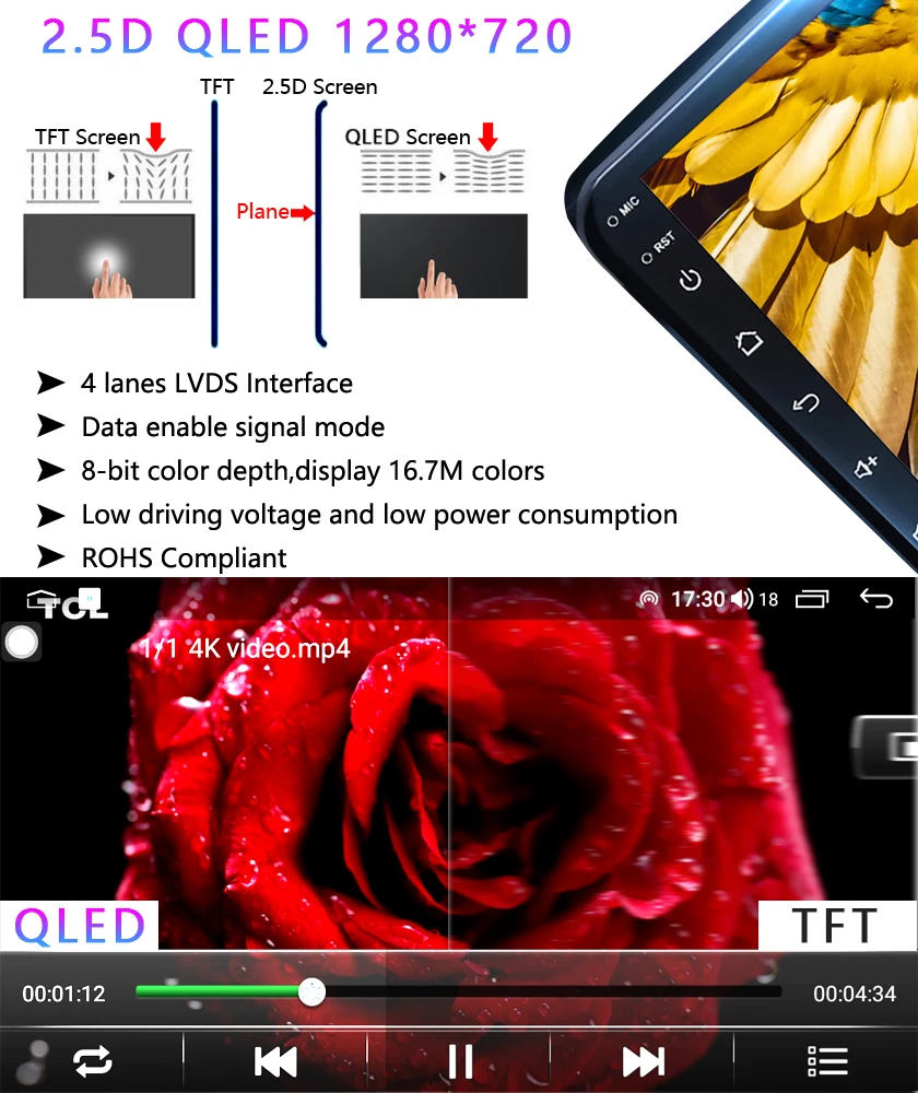 2.5D, предотвращает соскабливание, IPS экран для всех углов обзора очень четкий.