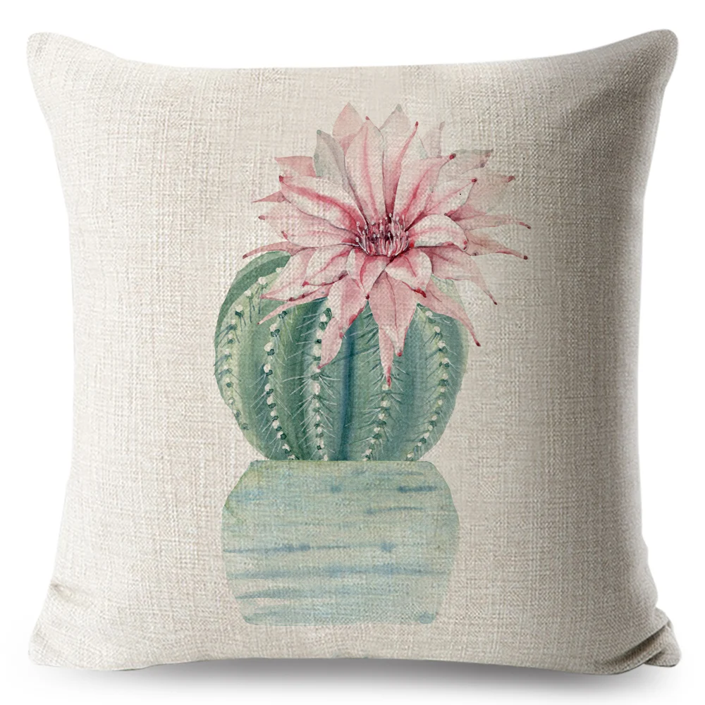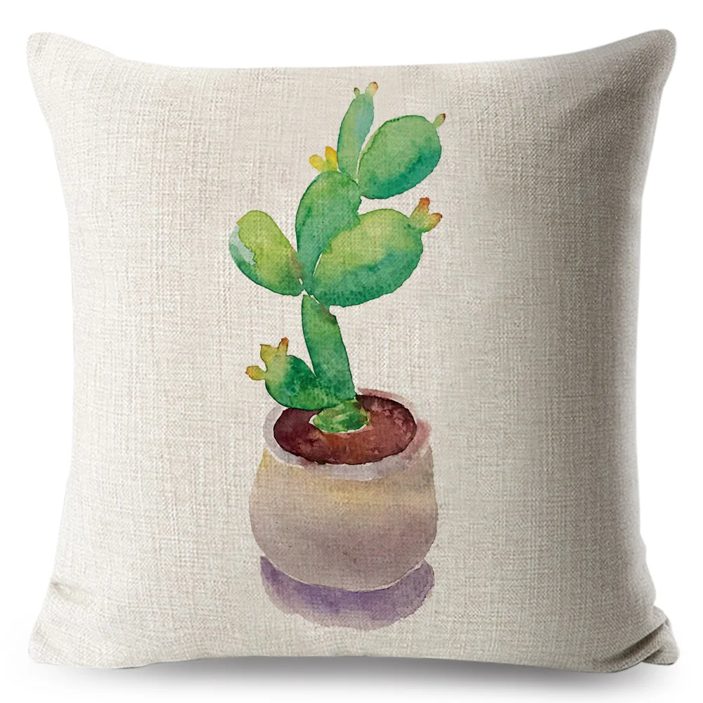 Наволочка для подушки в скандинавском стиле, декор акварелью, кактус, растение, цветы, набивная наволочка для дивана, для дома, наволочка из полиэстера 45х45см