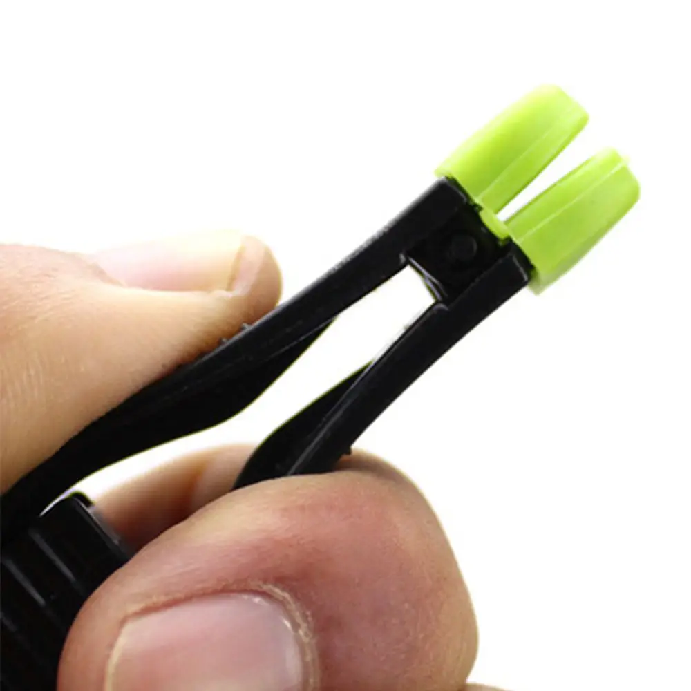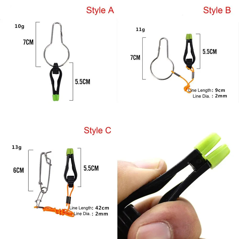 - Fishing line is gripped between the soft pads with variable release tension attained by moving the line in or out of the jaws.