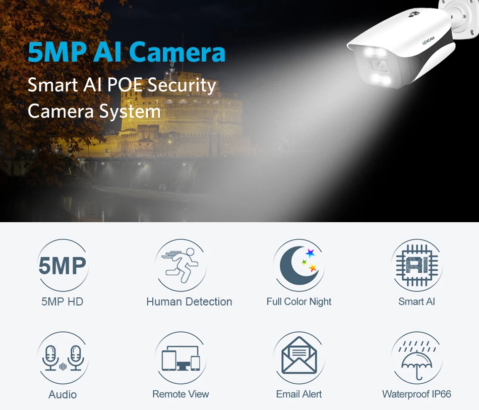 Идеально подходит для дома или бизнеса 5MP (2592x1944) предлагает исключительное разрешение Full HD и quanlity повышение эффективности и возможности мониторинга.