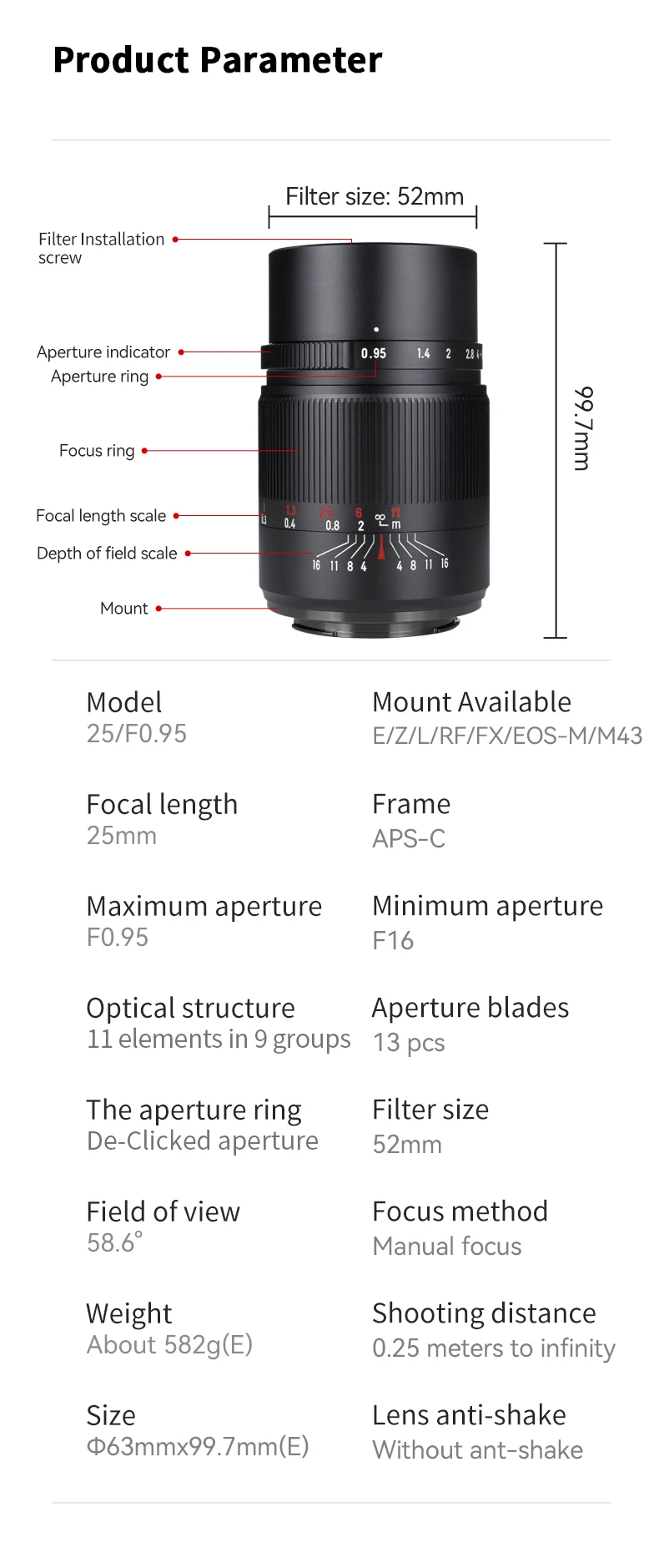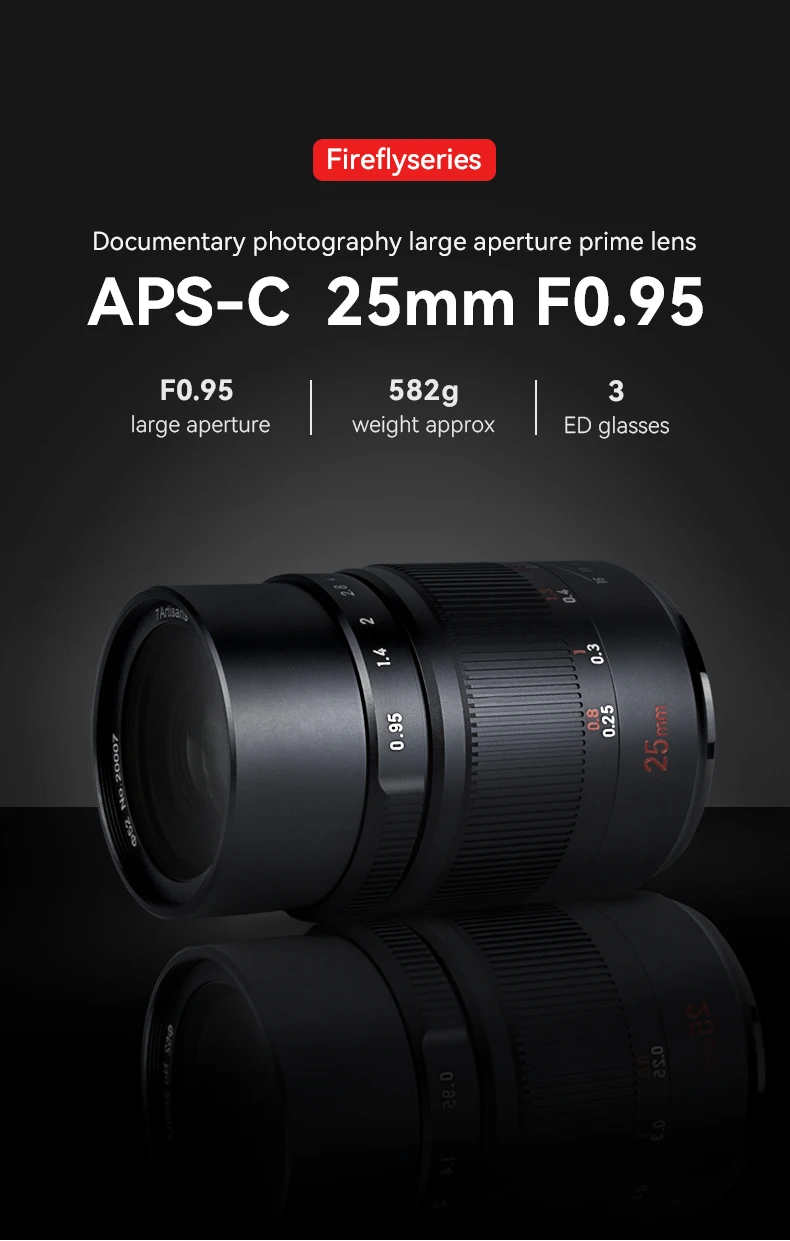 Объектив для камеры 7 ремесленников 25 мм F0.95 APS-C MF Prime для Fuji X/Sony E/Nikon Z/Canon EOS-M EF-M/Leica L/Sigma/Olympus M4/3